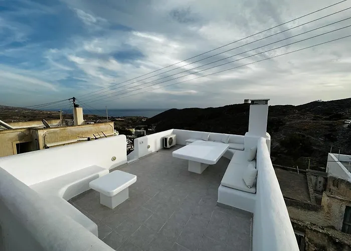 Si te alojas en el apartamento Akrotiri Castle View, podrás relajarte en su terraza. El apartamento se encuentra a una distancia de 6 km del Volcán de Santorini.